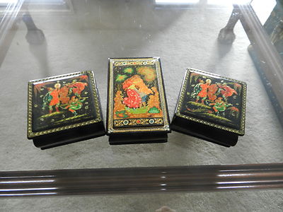 Russian Black Lacquered Box Troika - 2 small, one large - 3 total