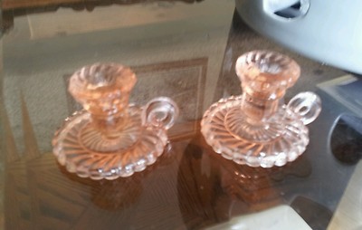 antique pink depression glass candlestick holders