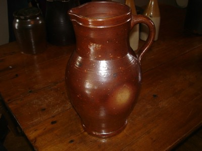 VERY OLD LARGE RED WARE POTTERY PITCHER CROCK STAMPED
