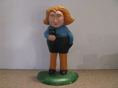CAST IRON DOOR STOP / BOOK END - Red Haired Girl Holding Black Cat