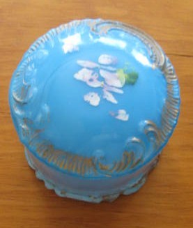 Vintage Blue milk glass Powder Jar- 3 1/4" dia.