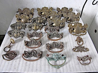 20 Plus Antique Victorian Brass Furniture Drawer Pulls Drop Handles Man of North