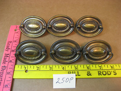 6 DRAWER PULLS OVAL old vintage hardware dresser cabinet