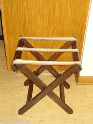 Title (ebay affiliate link): VINTAGE MISSION STYLE WOODEN WOOD SUITCASE LUGGAGE STAND COMPACT FOLDING HOTEL
