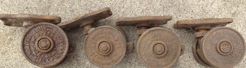 Title (ebay affiliate link): 4 Antique Cast Iron Hamilton Dual Casters Patd 1906 Steam Punk 2 1/8" Lot 2