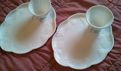 Title (ebay affiliate link): 4 Ps. Collectible Indiana Milk Glass Grape Harvest design cup & snack plate set