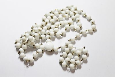 Vintage Necklace perfect extra long strand of white milk glass beads goldtone