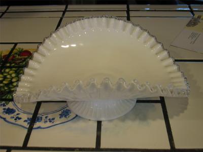 Milk Glass Silver Crest Rufle Edge - Pedestal Bowl