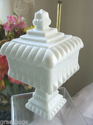 Fancy Vintage White Milkglass Covered Pedestal Container