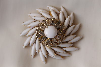 Vintage Goldtone Milk Glass RS Swirl Brooch/Pendant