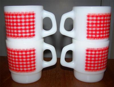 Title (ebay affiliate link): Vtg FireKing Mug Anchor Hock Gingham Rug Pattern Milk Glass Stack Red Coffee Mug
