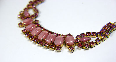 VINTAGE STUNNING PRISTINE VIVID PINK OPAQUE MILK GLASS PINK RHINESTONE BRACELET