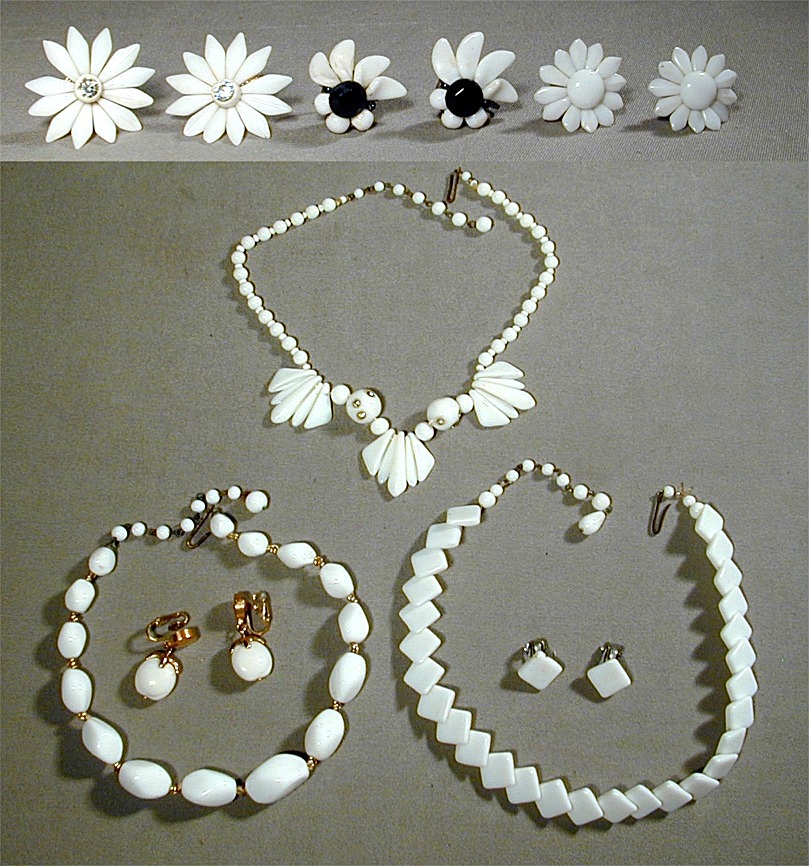 Lot of Vintage MILK GLASS Jewelry Necklaces Earrings