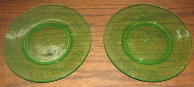 2 VINTAGE GREEN DEPRESSION GLASS DISHES PLATES