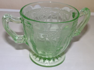 Sugar Bowl w Handles Hocking Cameo-Ballerina-Dancing Girl GREEN DEPRESSION GLASS
