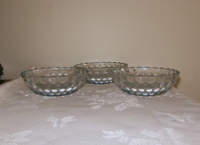 Title (ebay affiliate link): 3 Vintage Hocking Glass Blue Sapphire "Bubble" Cereal Bowls