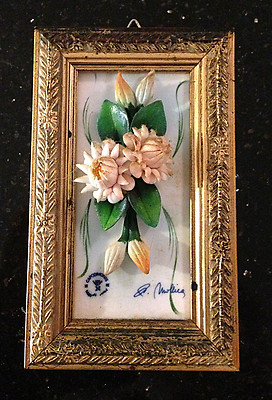 Title (ebay affiliate link): 2 Vintage Raised Porcelain Rose Floral Capodimonte Picture Wall Hanging Frame