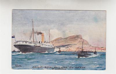 ORIENT ROYAL MAIL LINE " RMS OMRAH " at Gibraltar, 1907 used South Australia