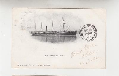 S.S. " SOPHOCLES ", 1903 ppc. Victoria to NSW.