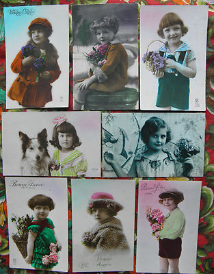 8 x 1920s Cute Deco Fashion Girls Boys Dog Paris Studio Photo Post Cards