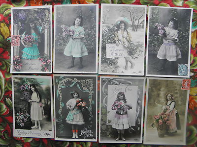 8 x 1900s French Edwardian Fashion Girls Hat Paris Studio Photo Post Cards