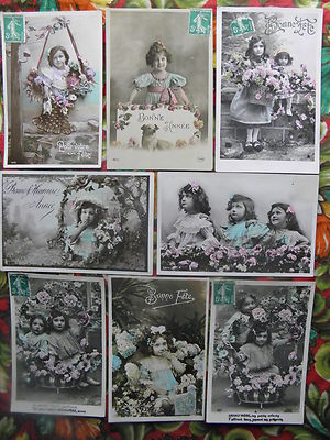 8 x 1900s French Edwardian Fashion Girls Hat Dog Doll Paris Photo Post Cards