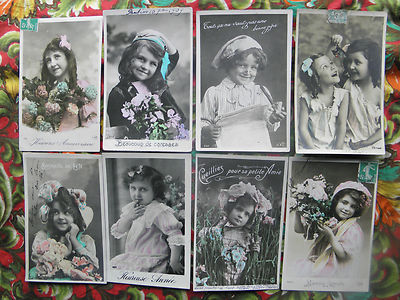 8 x 1900s French Edwardian Girls Boy Pipe Hat Cherry Paris Photo Post Cards