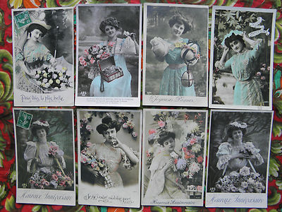8 x 1900s French Lady Hat Lace Jewel Box Umbrella Paris Photo Post Cards