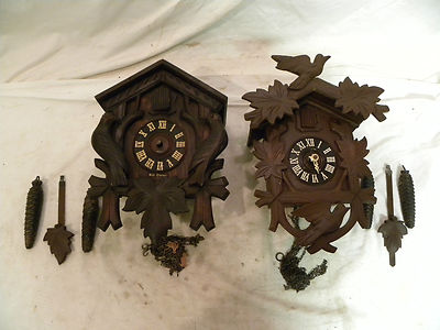 Title (ebay affiliate link): TWO VINTAGE GERMAN CUCKOOS SETH THOMAS CUCKOO CO. WEIGHT DRIVEN WALL CLOCKS 4A