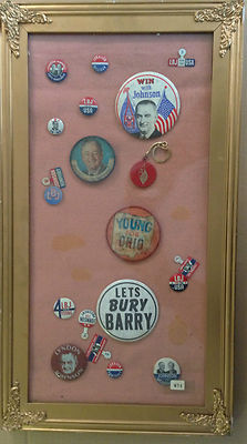 Title (ebay affiliate link): Framed Lyndon Johnson Buttons Key Chain 12.5" x 22.5" Collectors Item