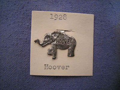 Title (ebay affiliate link): VINTAGE 1928 HOOVER METAL ELEPHANT TAB - PINBACK
