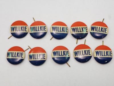 LOT OF 10 1940'S WENDELL WILLKIE POLITICAL PIN PINBACK BUTTONS
