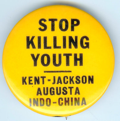 Title (ebay affiliate link): Anti VIETNAM Peace Pin! STOP KILLING YOUTH Kent Jackson Augusta Indo-China