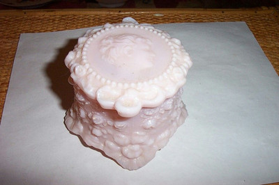 Fostoria pink Jenny Lind box w/lid-milk glass-trinket