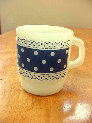 Vintage Fire King Blue Lace & Polka Dot Milk Glass Mug