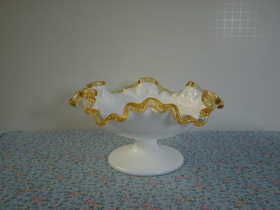 Fenton Milkglass GoldCrest Pedestal Compote.