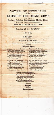 Title (ebay affiliate link): 1865 Laying of the Corner Stone Broadway Orthodox Congregational Meeting House