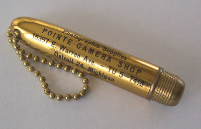Title (ebay affiliate link): VINTAGE PROMO BRASS KEY CHAIN CAMERA LENS DUSTER BRUSH - LIPSTICK TYPE PEN STYLE