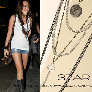 Fashion Punck Vintage Multilayer Chains Strands Coins Keys Pendant Long Necklace
