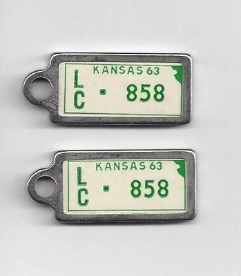 Title (ebay affiliate link): (2) Vintage 1963 Kansas LC (Lincoln County) 858 DAV License Plate/Tag Keychains
