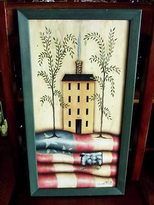 Title (ebay affiliate link): Primitive Saltbox Americana Sheep Sliney Land of Freedom Framed Print 21" x 11"