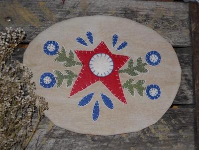 Primitive Americana Folk Star Penny Rug ~ Cranberry Homespun Candle Mat
