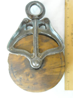 Title (ebay affiliate link): Antique/Vintage Cast Iron Wood Barn Pulley Collectible Primitive Farm Tool