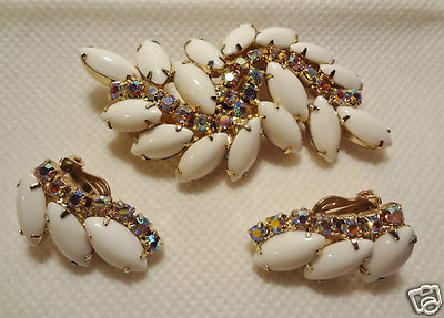 Title (ebay affiliate link): 1 DAY SALE! JULIANA MILK GLASS & AB RHINESTONE BROOCH & EARRINGS
