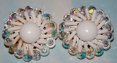 Title (ebay affiliate link): Vtg Germany Aurora Borealis Milk White Beaded Glass Brass Clip On Earrings Sgn