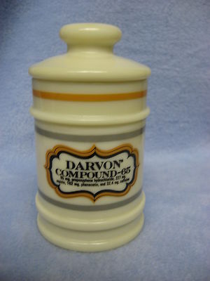 Title (ebay affiliate link): Vintage Darvon Compound 65 Apothecary Jar Milk Glass Drug Store~Cotton Balls