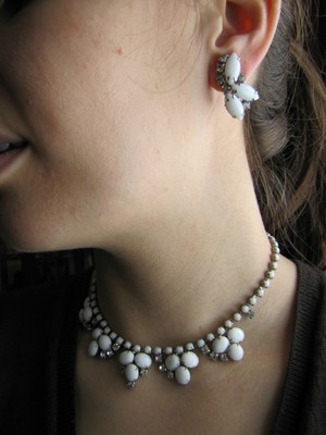 Title (ebay affiliate link): Vintage Milk Glass and Crystal Rhinestone Necklace Bridal Set