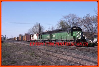 WC/BN-6517 (2) SD45 Orig RR Slide Neenah Wi.1988 Manifest Train Action