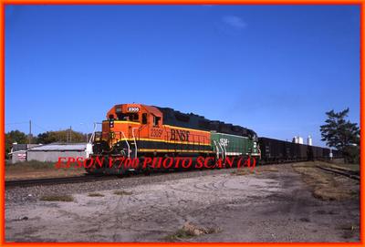 Title (ebay affiliate link): BNSF-2305 (A) GP38-2 Orig RR Slide Moorehead Mn.2001 Train Scene MT Hoppers