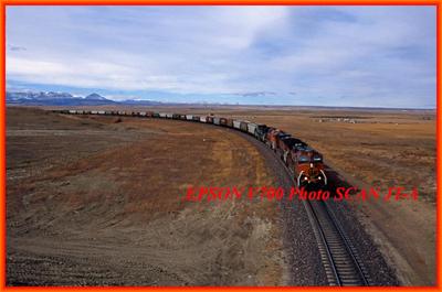 BNSF-1117 (A) C44-9W Orig RR Slide Browning Mt.1997 Scenic Long Train Action